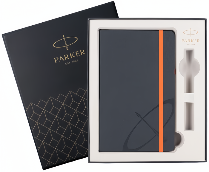Подарочная коробка Parker с блокнотом от официального дилера Parker в Королеве. Вы можете дополнительно заказать гравировку, которая подчеркнет Вашу оригинальность и придаст памятность статусному подарку. Все ручки Паркер поставляются в фирменном футляре.
